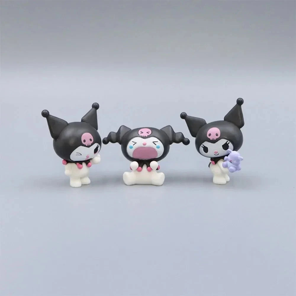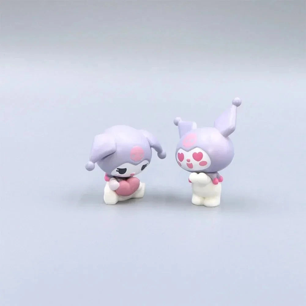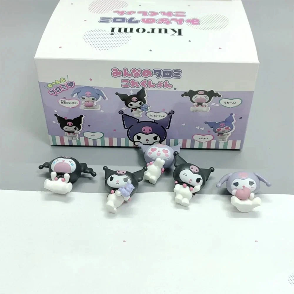 The My Melody Kuromi action figure is an adorable collection of 5 miniatures based on popular Sanrio characters, including My Melody, Kuromi, Cinnamoroll, and Hello Kitty. These kawaii figures are perfect for cute decorations and gifts for girls and kids.