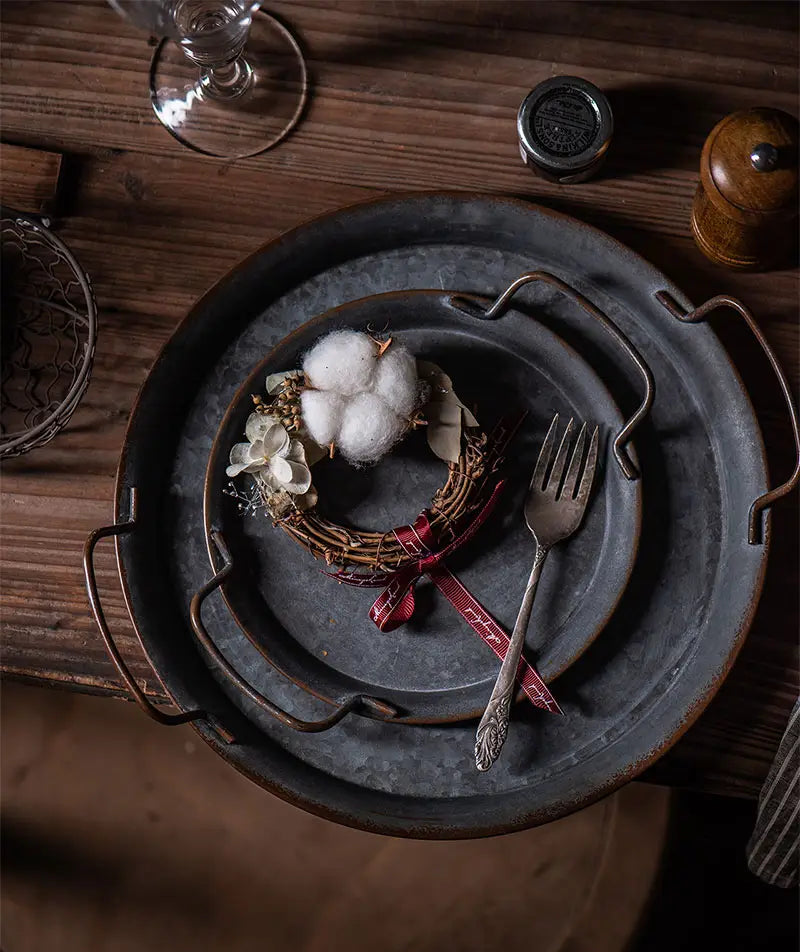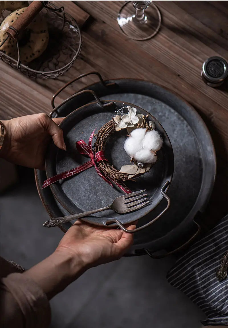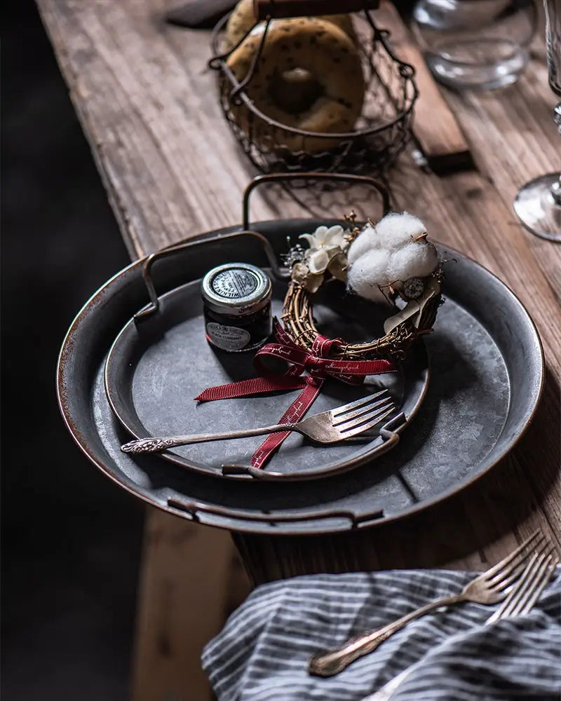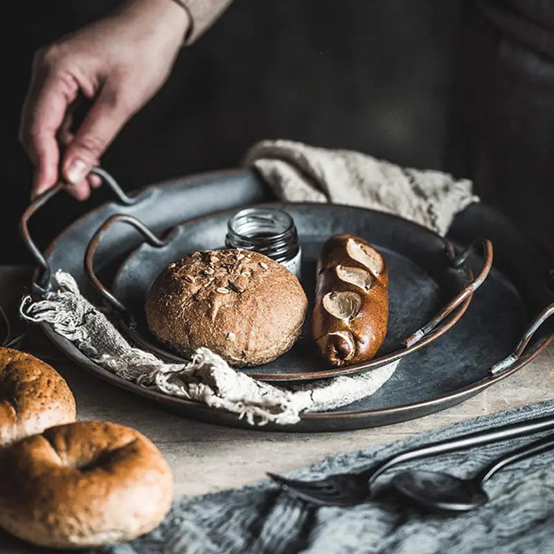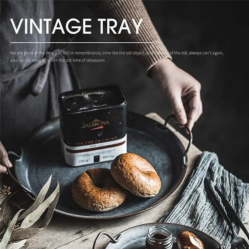 Inspired by the charm of the 1920s, the Vintage Cast Iron Tray combines a classic design with the strength of wrought iron, bringing a rustic and sophisticated touch to any environment. Perfect for serving fruit, bread, desserts or even as a decorative piece , this tray stands out for its handcrafted finish and authentic retro style.