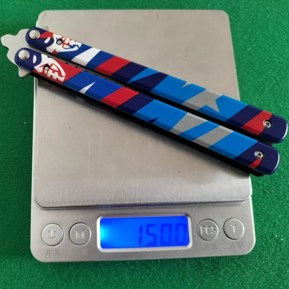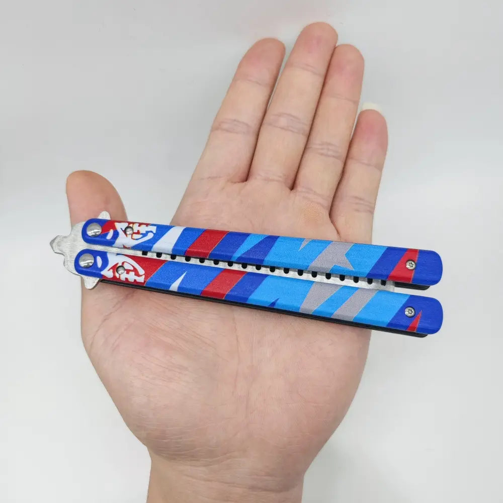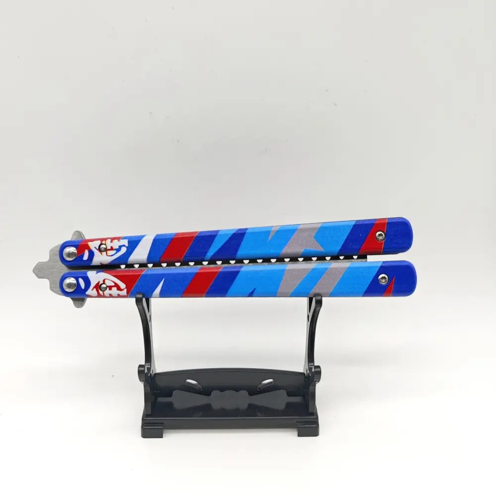 Made of premium stainless steel , this replica brings the elegant look of the Valorant butterfly knife, but with total safety for training: no cutting and no danger , just skill in hand.