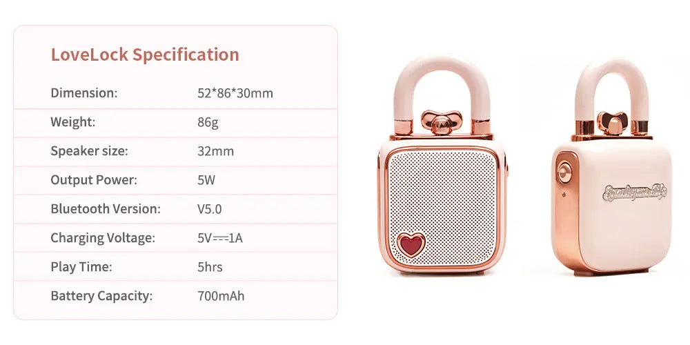 The Divoom LoveLock is a portable Bluetooth speaker with a sleek, mini design, perfect for those who want quality sound with style. With a cute, retro finish, it stands out both as an audio device and as a decorative addition to your bedroom or workspace. It's a great gift for girls and anyone who enjoys stylish and functional products.