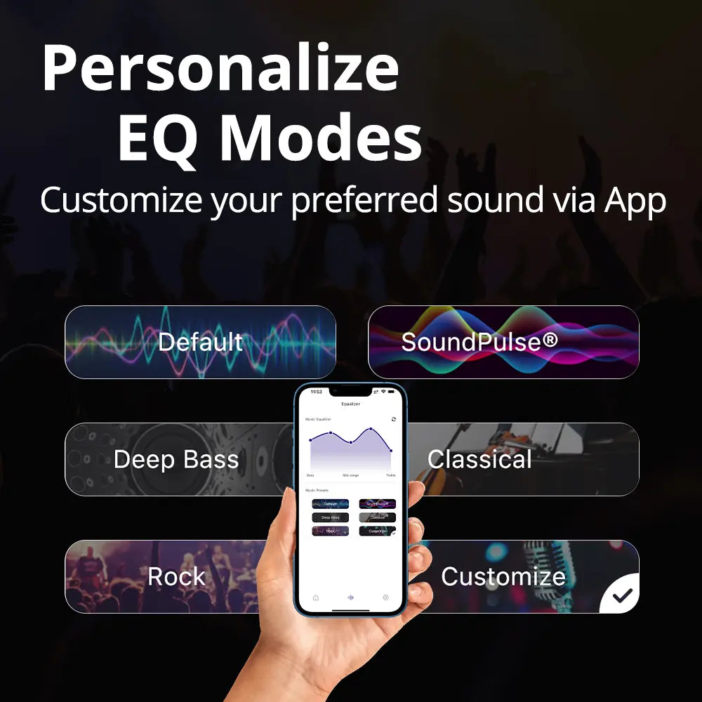 Download the Tronsmart app (iOS/Android) and customize your sound with 6 different equalization modes.