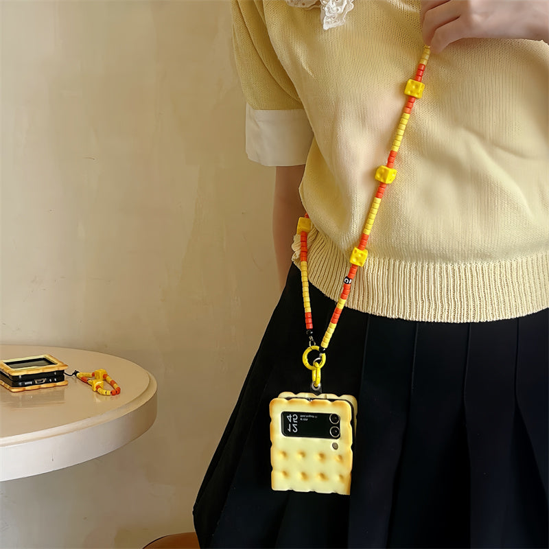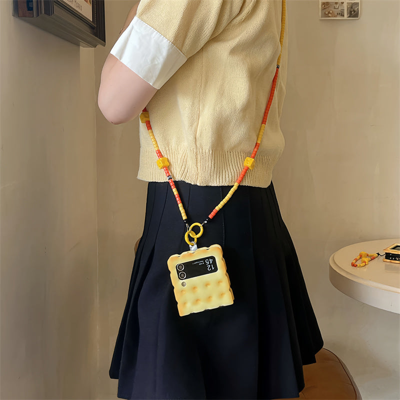 Transform your Samsung Galaxy Z Flip into a unique and fun accessory with the Cookie Protective Case - Z Flip . With a 3D design that resembles a cookie, it brings style and functionality to your smartphone, in addition to having a practical crossbody strap for everyday use.