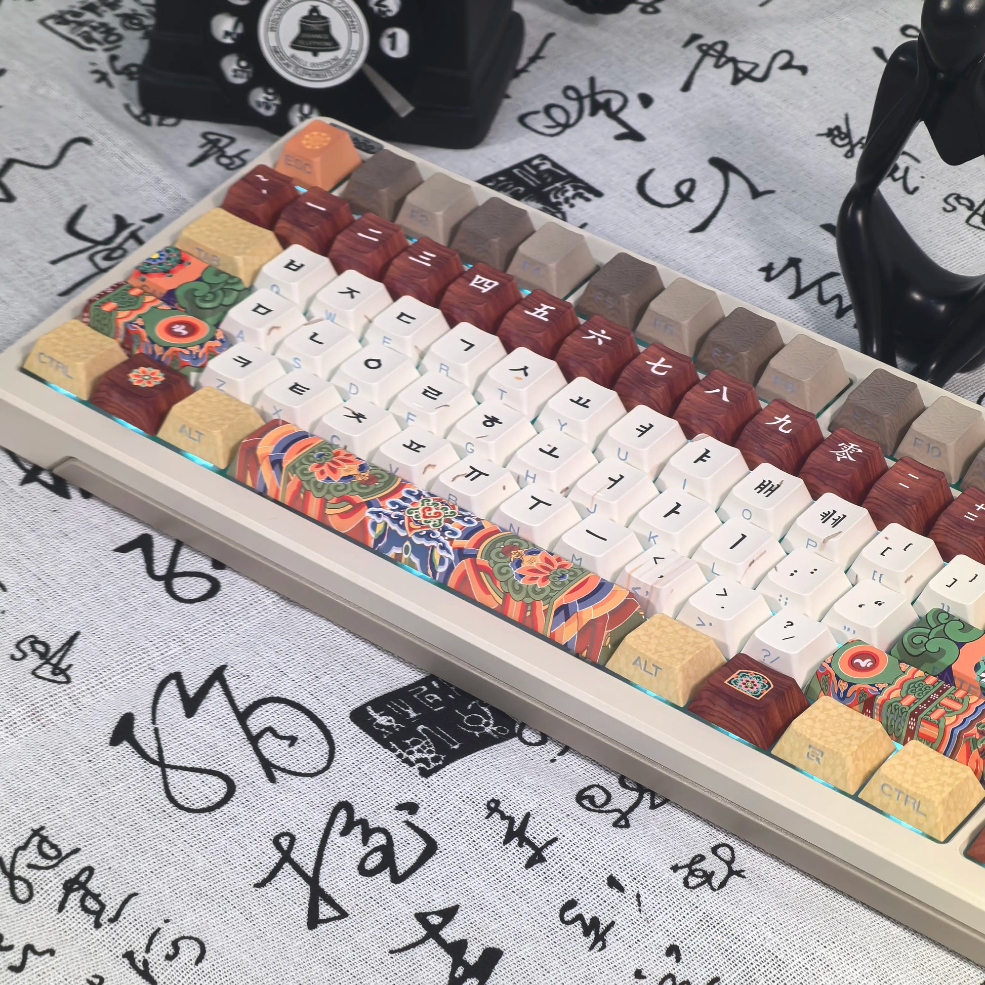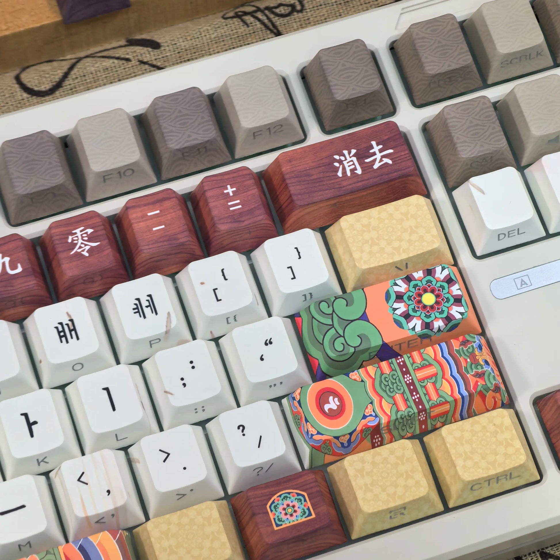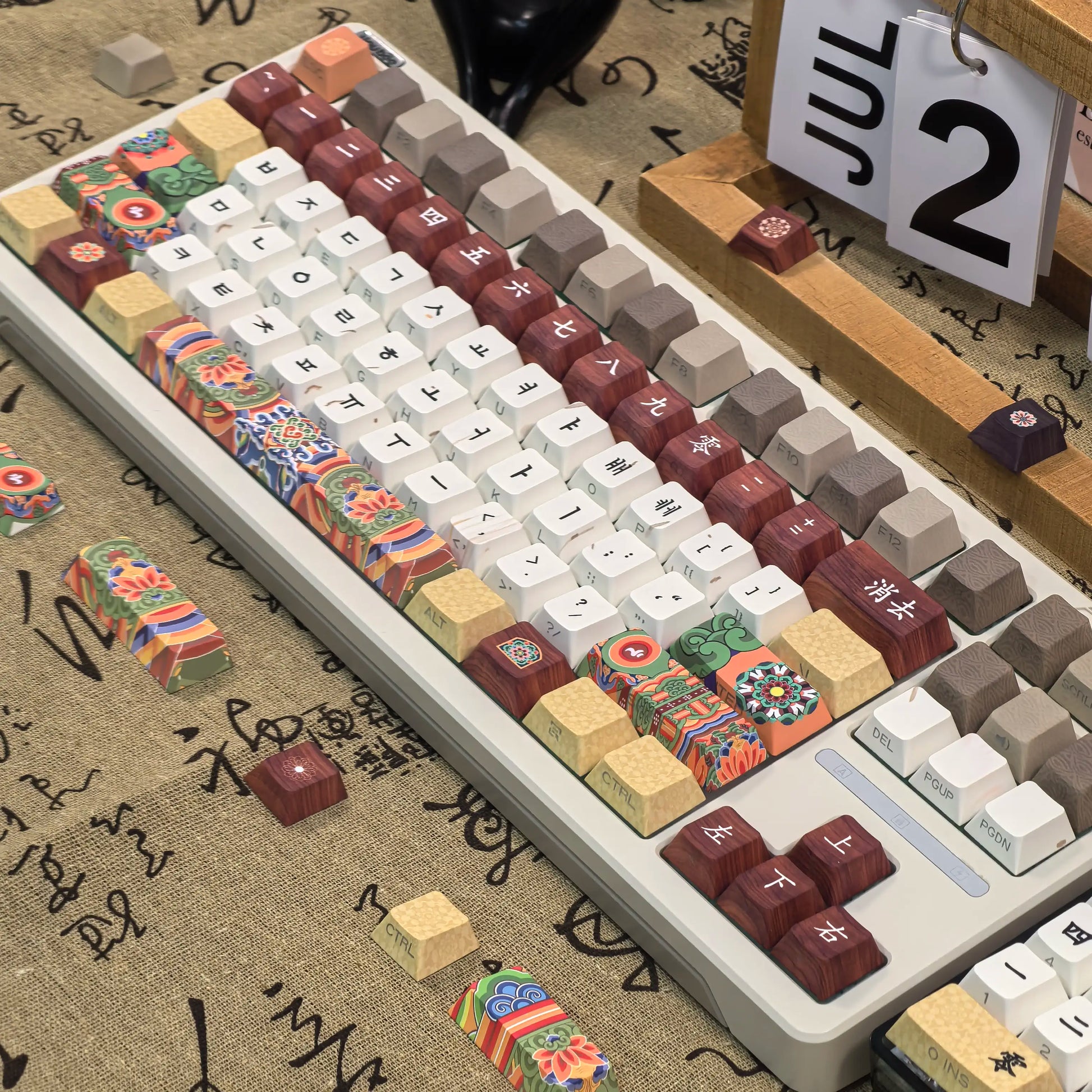 Transform your keyboard into a work of art with the Korean Retro Keycaps , which pay homage to the rich cultural heritage of traditional Korean architecture with the Dancheong design. This keycap set combines retro style, functionality and superior quality, ideal for lovers of mechanical keyboards and Asian culture.
