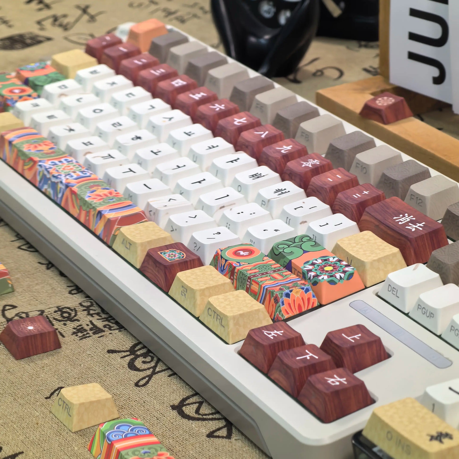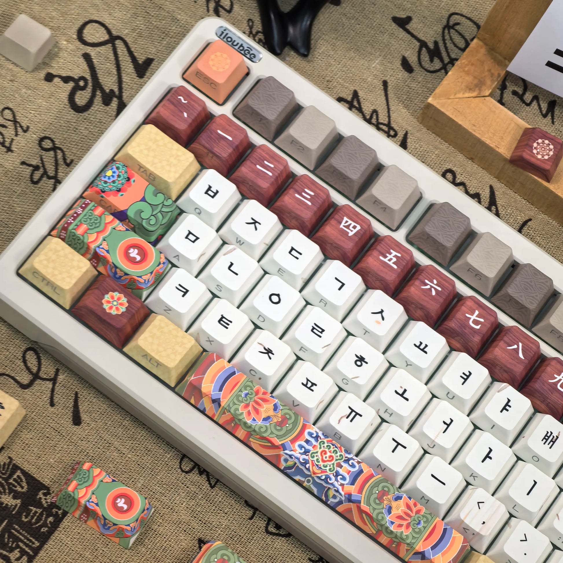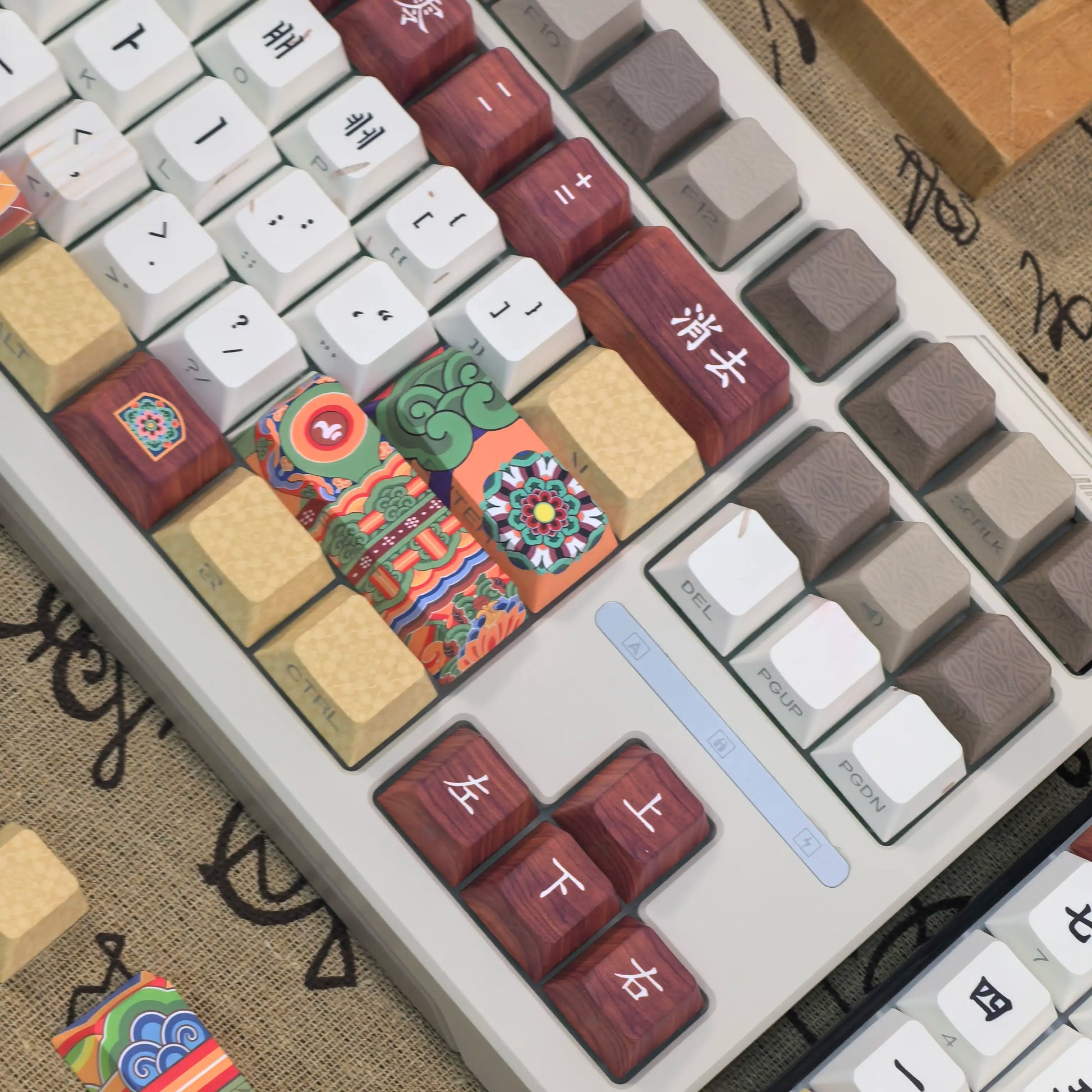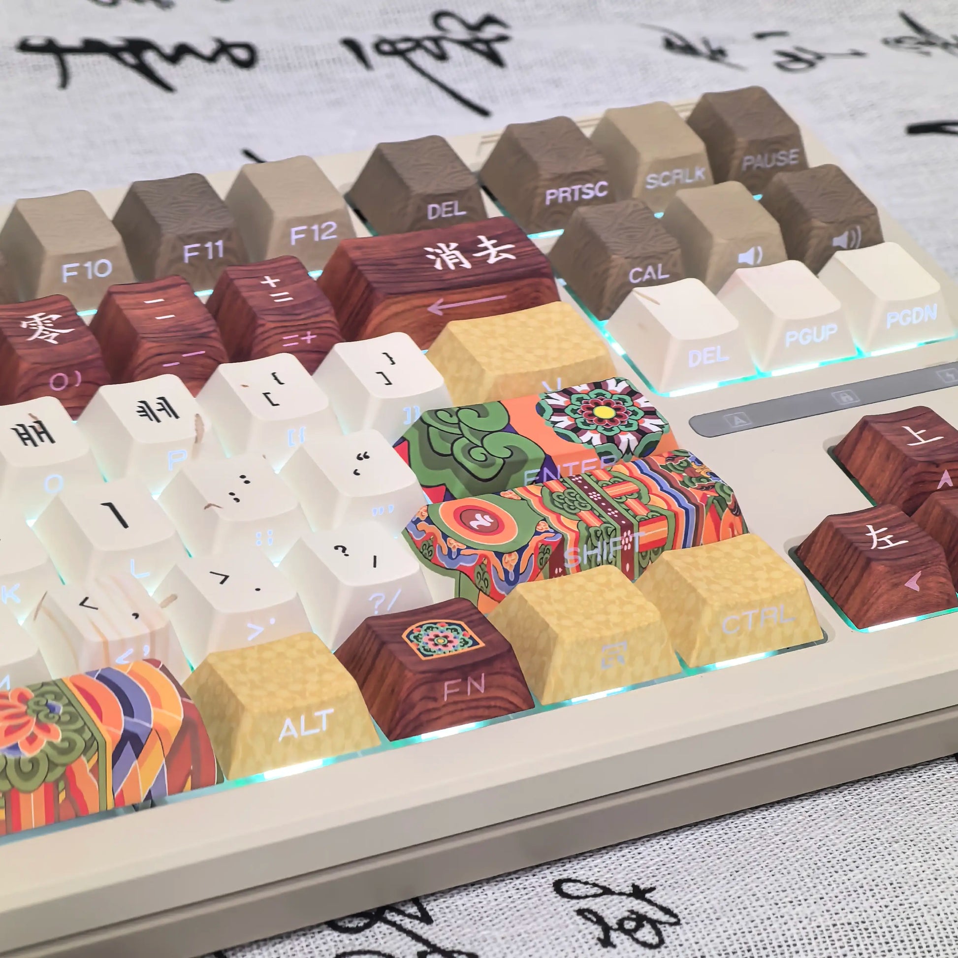 Transform your keyboard into a work of art with the Korean Retro Keycaps , which pay homage to the rich cultural heritage of traditional Korean architecture with the Dancheong design. This keycap set combines retro style, functionality and superior quality, ideal for lovers of mechanical keyboards and Asian culture.
