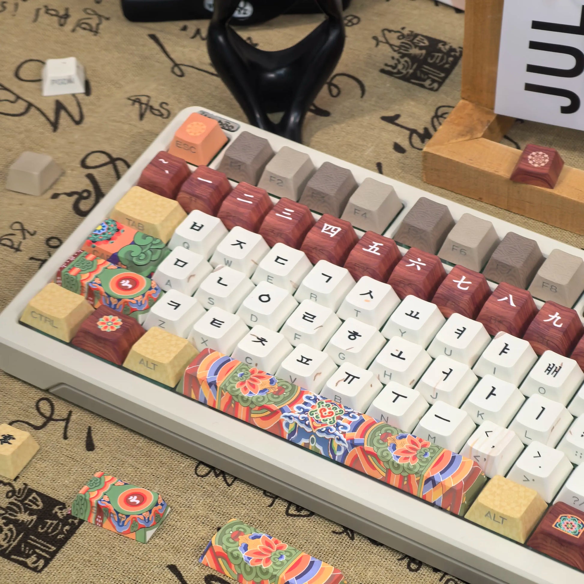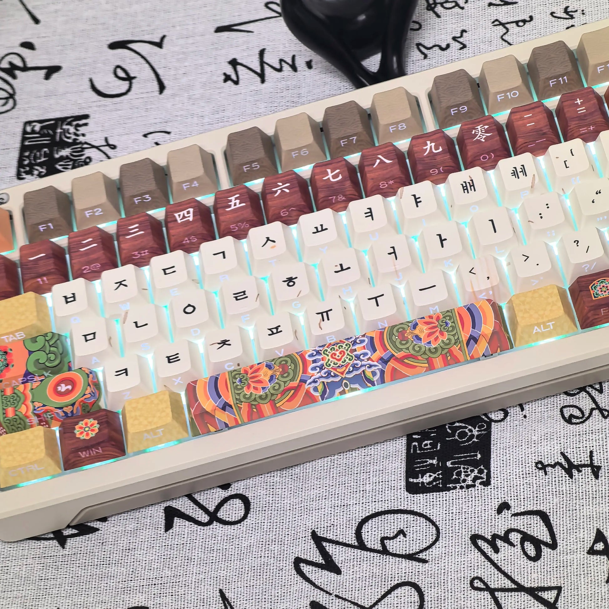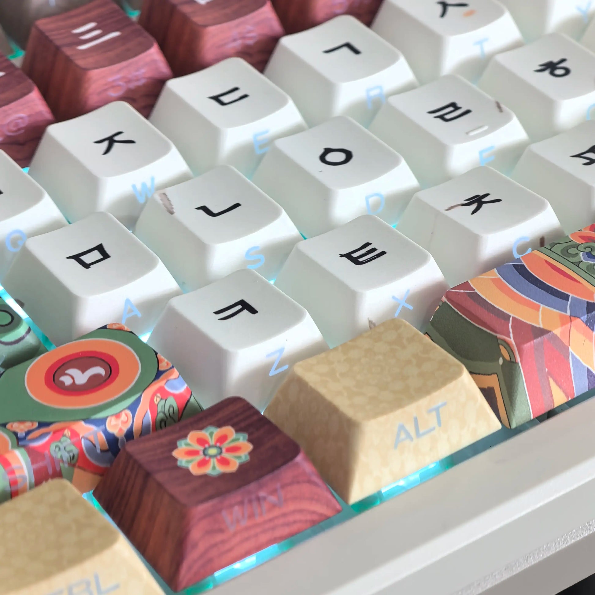 - Full Set of Korean Retro Keycaps (Hangul and Dancheong design).