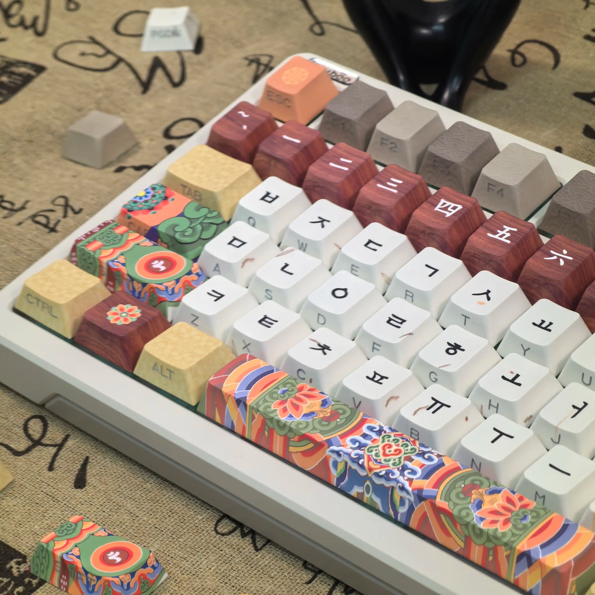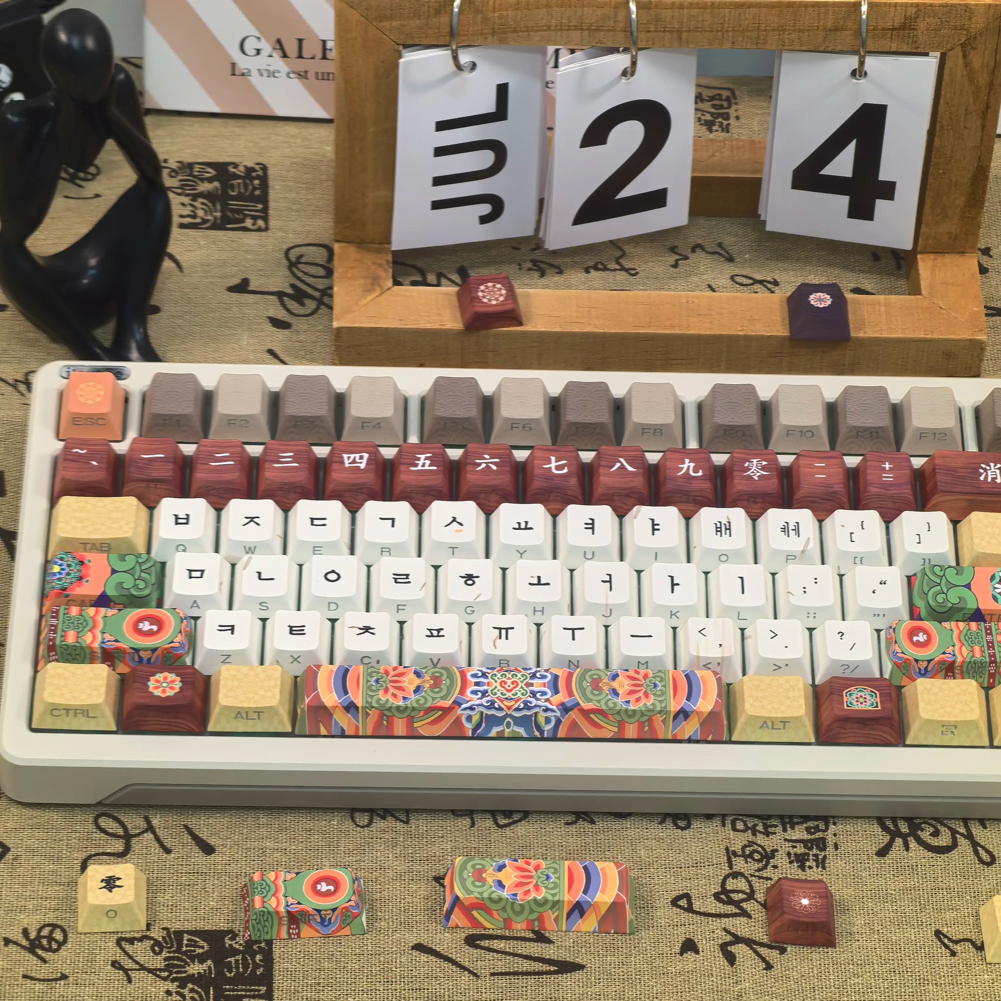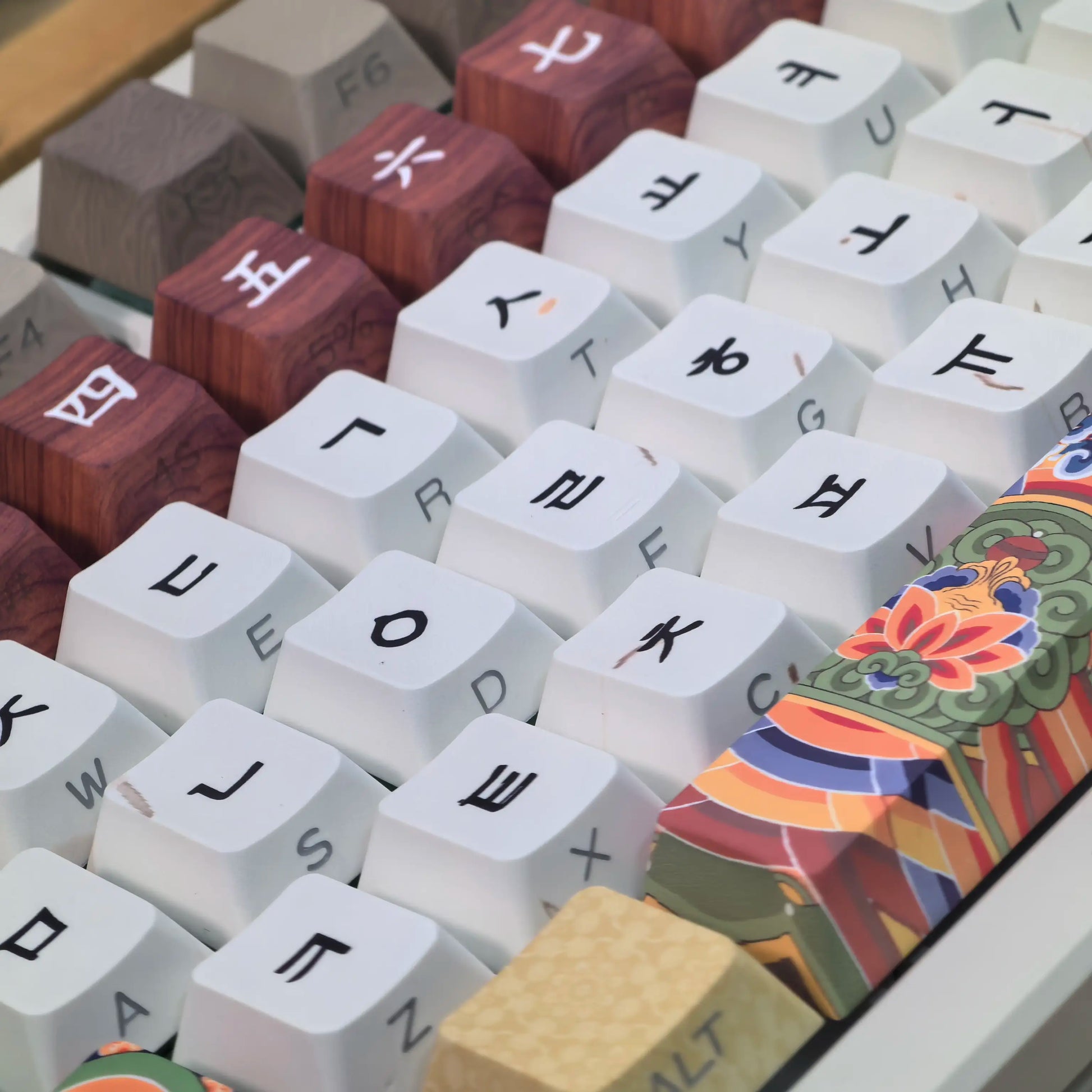 - Full Set of Korean Retro Keycaps (Hangul and Dancheong design).
