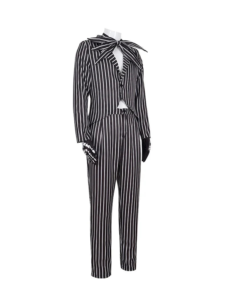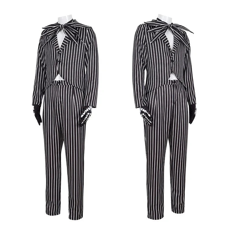 Complete Jack Skellington costume for men and women, ideal for Halloween and Christmas Eve themed events. Inspired by the iconic skeletal character, this costume offers an authentic design and is perfect for those who want to stand out at themed parties.