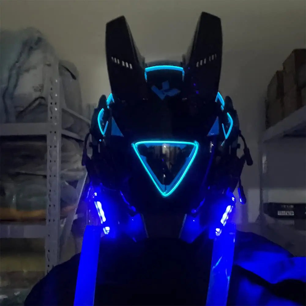 For those who enjoy a cyberpunk look with presence, the Technobeast is not just a mask, it's a statement. With vibrant triangular LEDs and an aggressive design, it's made to dominate any nightlife — be it at parties, raves or cosplay events.