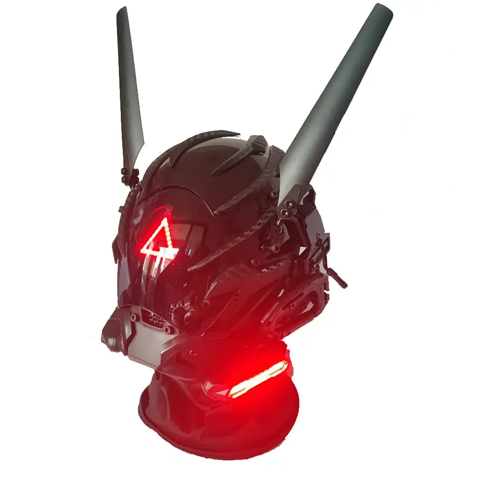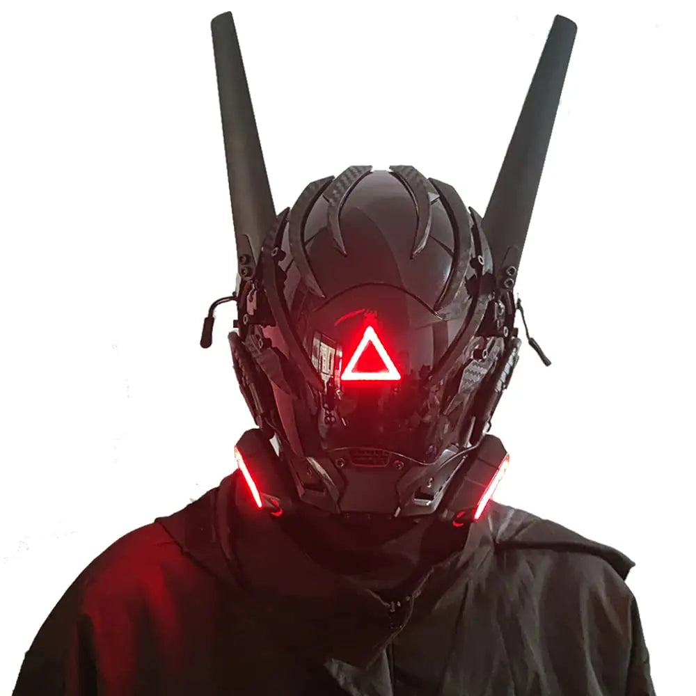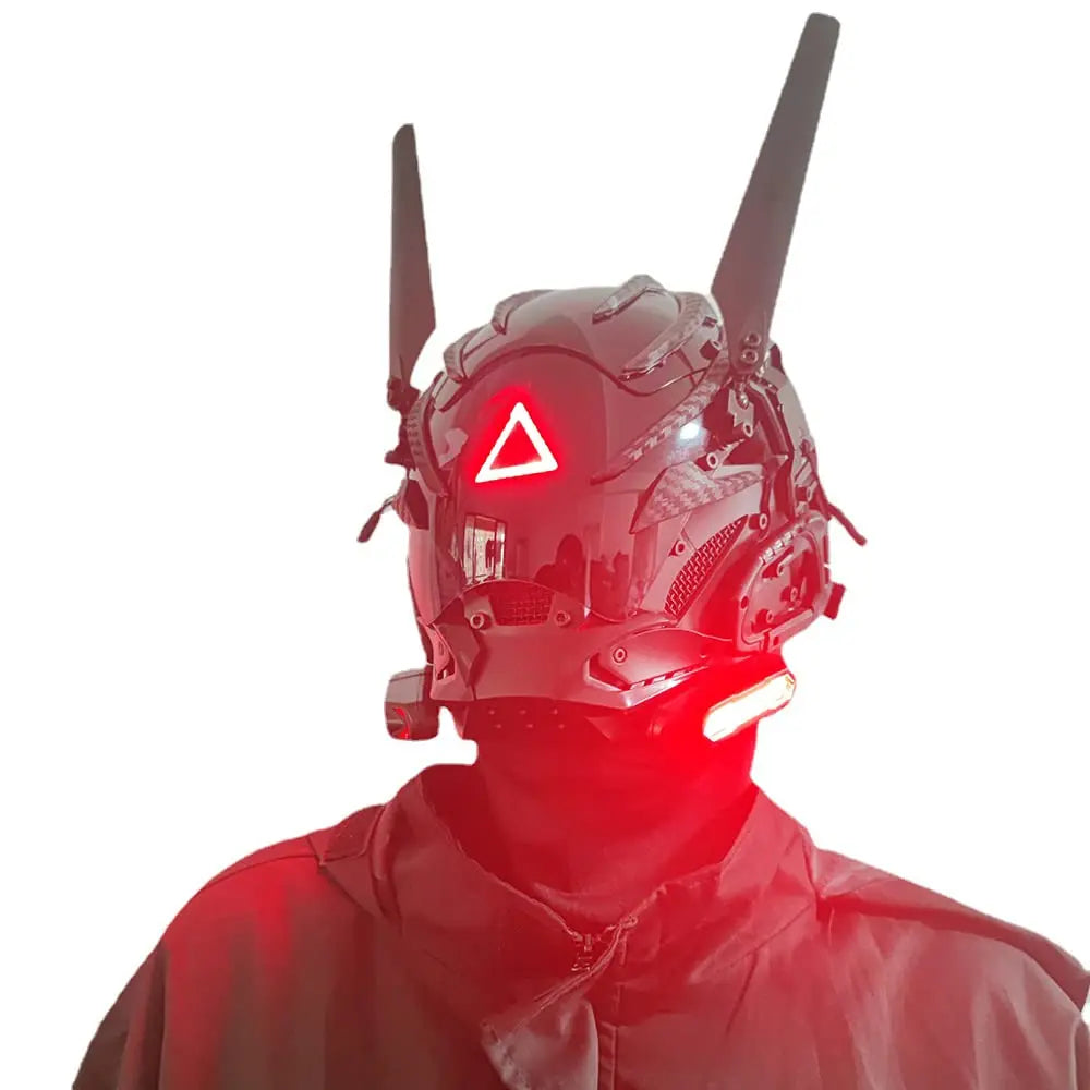 Technosmirkle is ideal for those who want a dystopian and symbolic look. The red triangle is its seal of silent sarcasm — a mask that doesn't need to speak to dominate the environment.