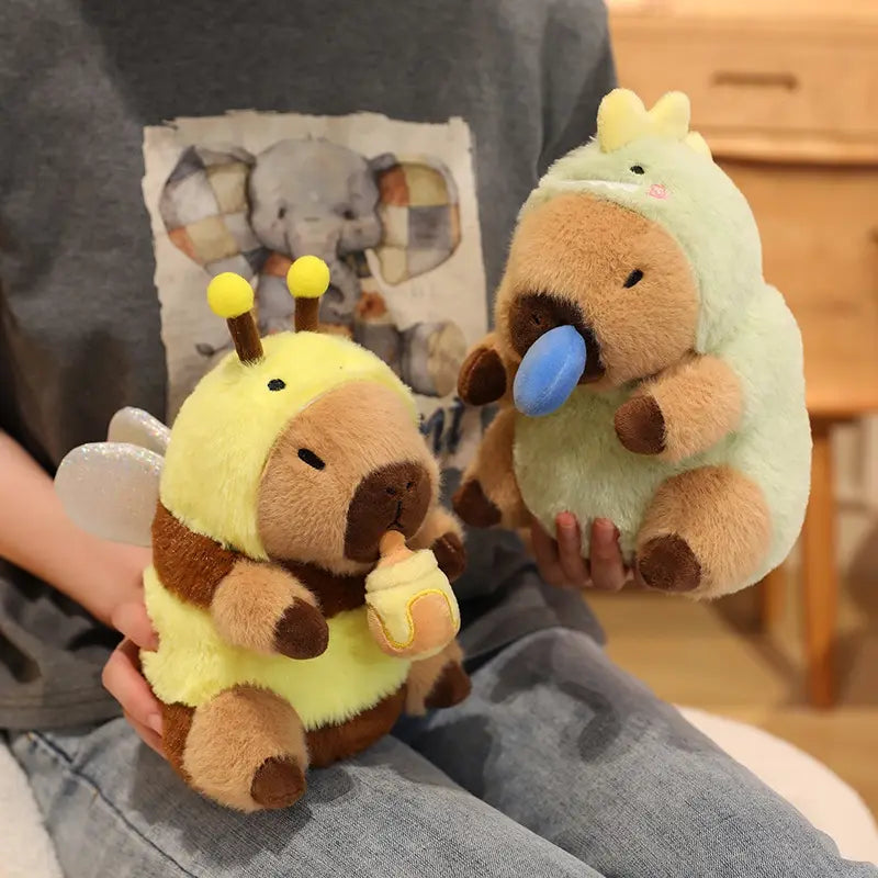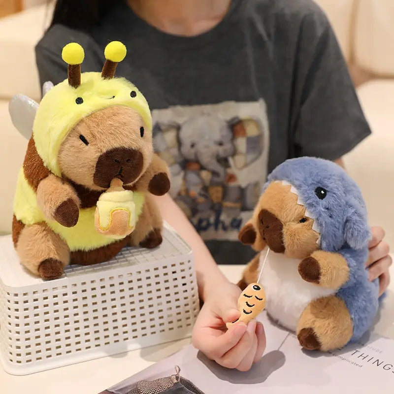 - Capybara in cosplay mode: Bee, shark, rabbit, dinosaur, cockroach or pig, each version with its own personality.
