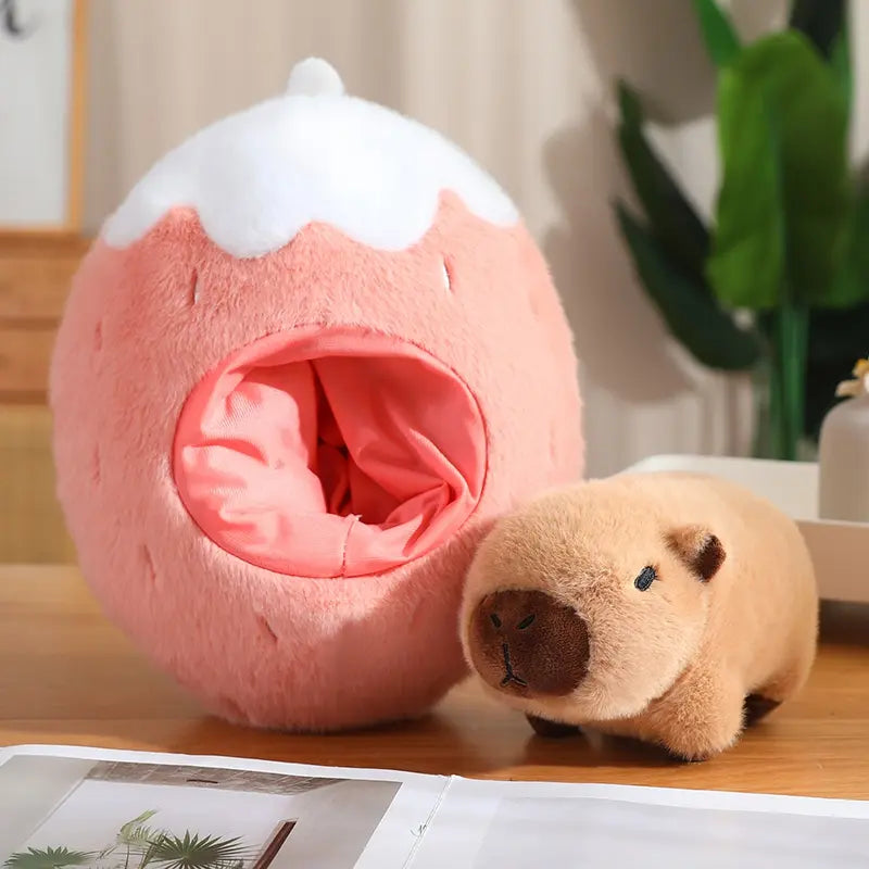 This plush toy brings the cutest chaos from the plant kingdom! The Fruit Capybara transforms into different delicacies like avocado, banana, strawberry and even carrot. With the perfect size to become a pillow or official mascot for your bed, this little beauty is pure charm and creativity.