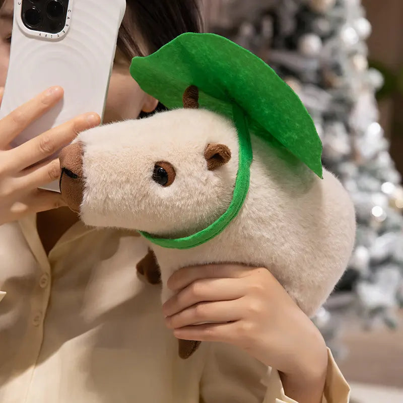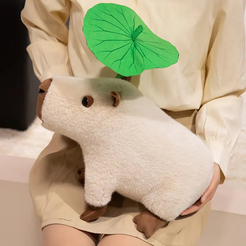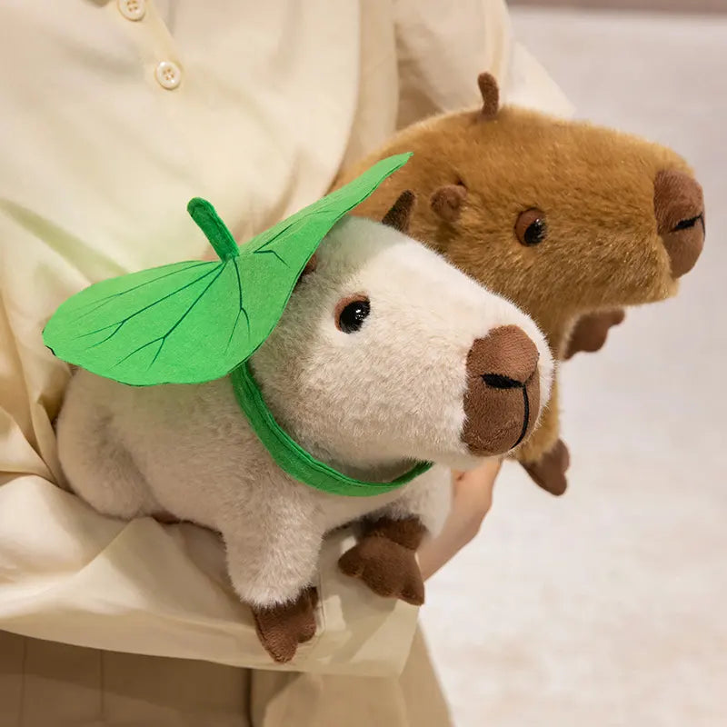 Capybaras are already calm by nature. Now imagine one with a lotus leaf? This one is practically a Zen monk of stuffed animals.