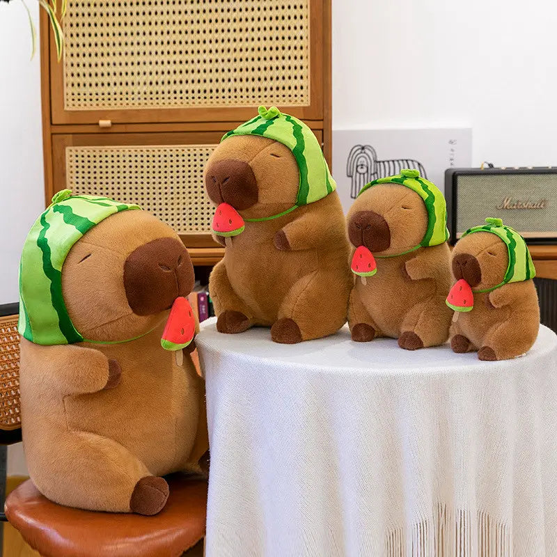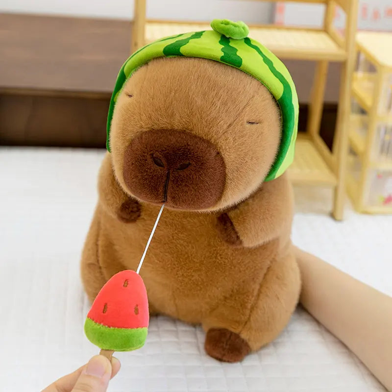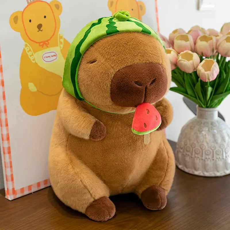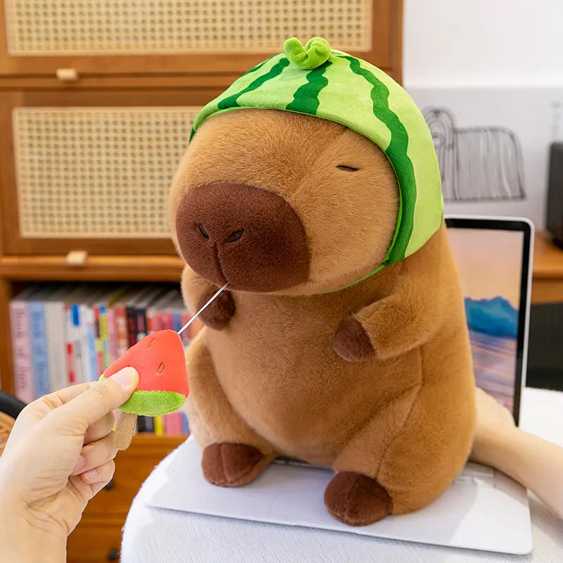 This capybara is the definition of cute freshness. Wearing a charming watermelon hat, she has won the hearts of plush and meme fans all over the world. Soft, huggable and perfect for brightening up your little corner.
