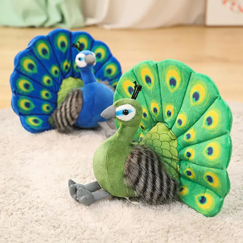 This plush peacock combines beauty and delicacy in a realistic-looking toy. With colorful feathers and a design inspired by the green and blue peacock, it's ideal for both children and adults who love birds, zoos, or want a unique and charming adornment.
