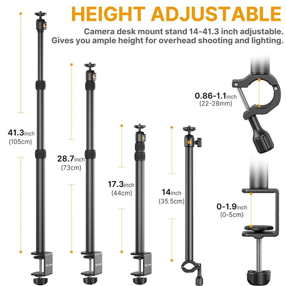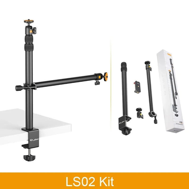 The VIJIM-C-Clamp LS02 Desktop Mount is a lightweight and robust solution for attaching DSLR cameras or photographic lighting equipment. Made from aluminum alloy, it offers a 360° rotating ball head for maximum flexibility in the position and angle of devices.