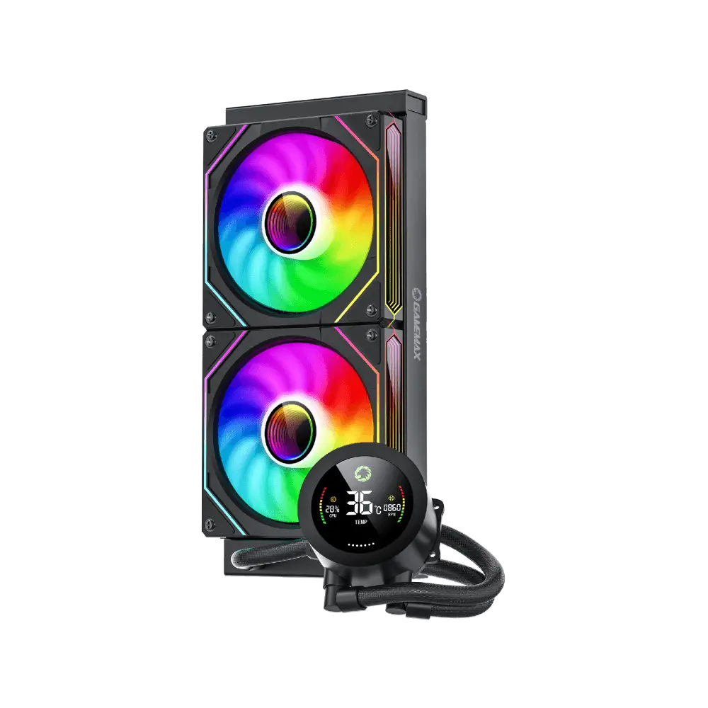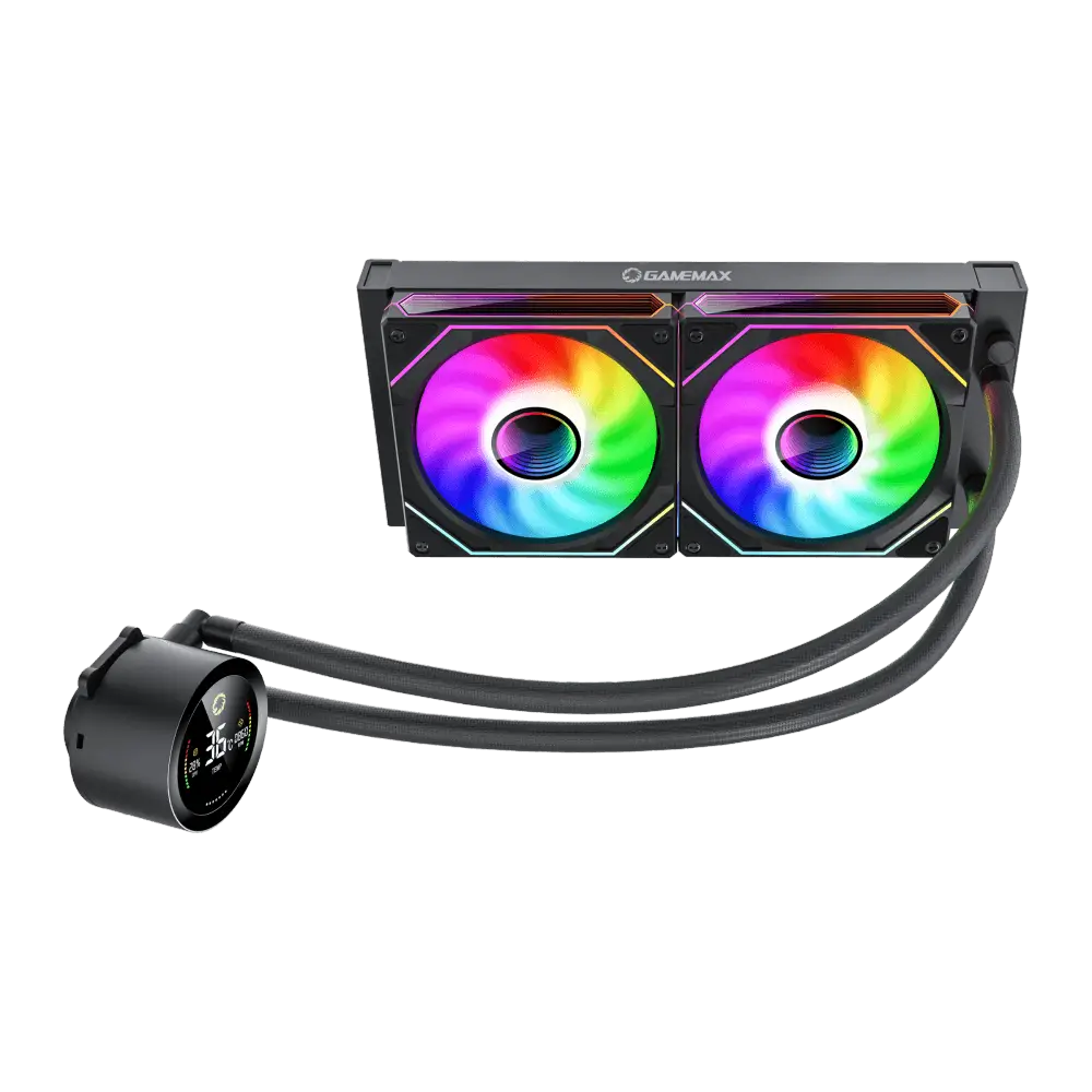 The Gamemax IceBurg 240 Digital is a high-performance water cooler with a robust design, ARGB lighting, and an integrated digital display . Ideal for gamer setups and hardware enthusiasts, it ensures excellent cooling for demanding processors, delivering not only efficiency but also a modern and customizable look.
