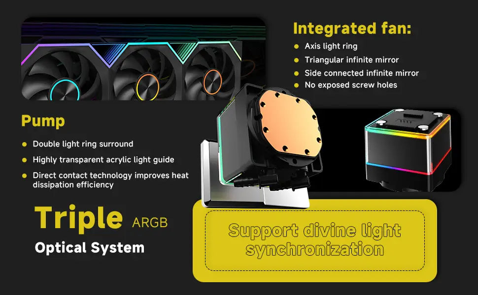 - High-performance ARGB pump: 2700 RPM ± 10%, with only 30 dBA of noise.