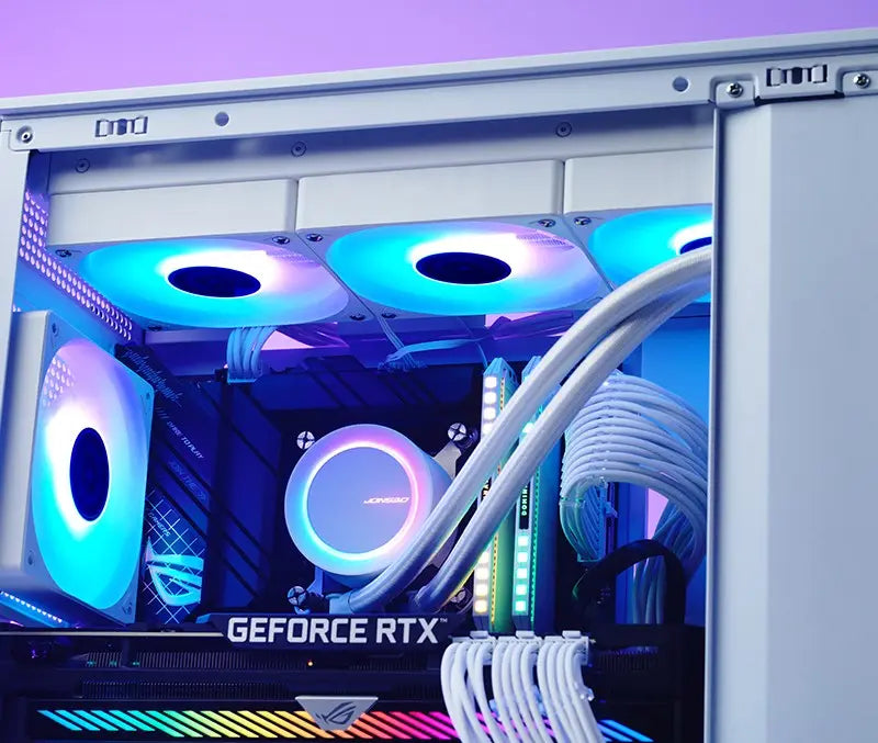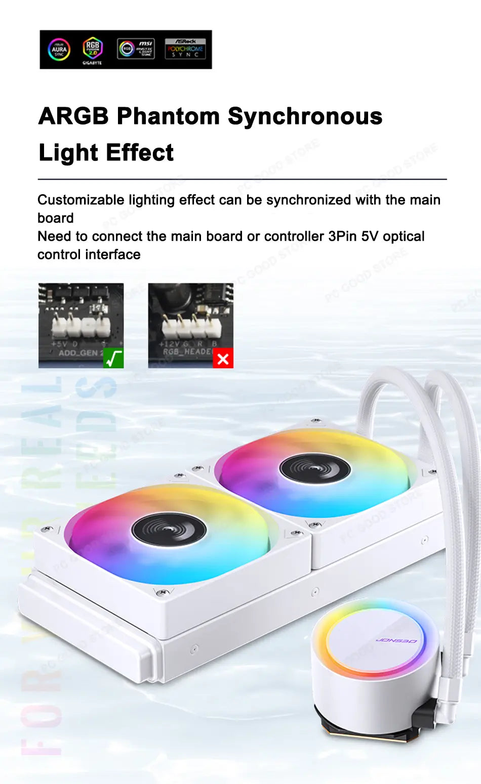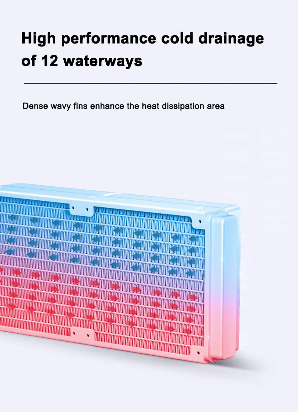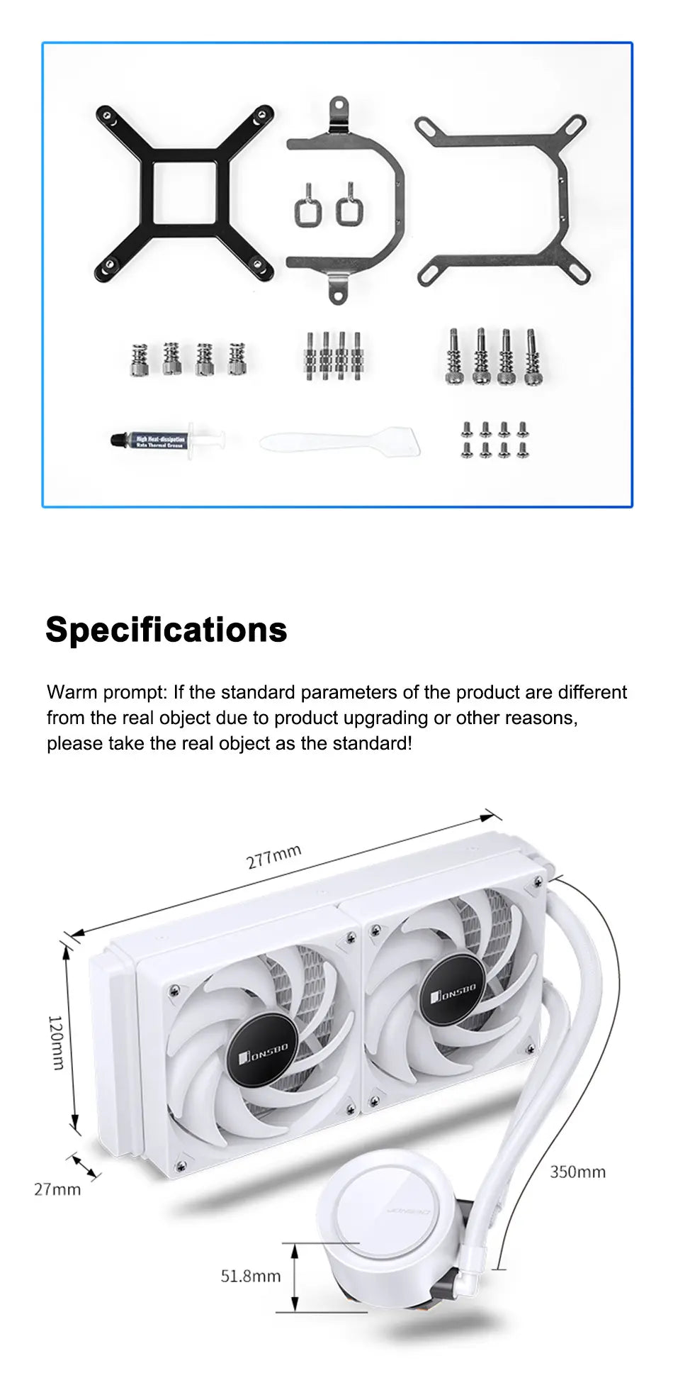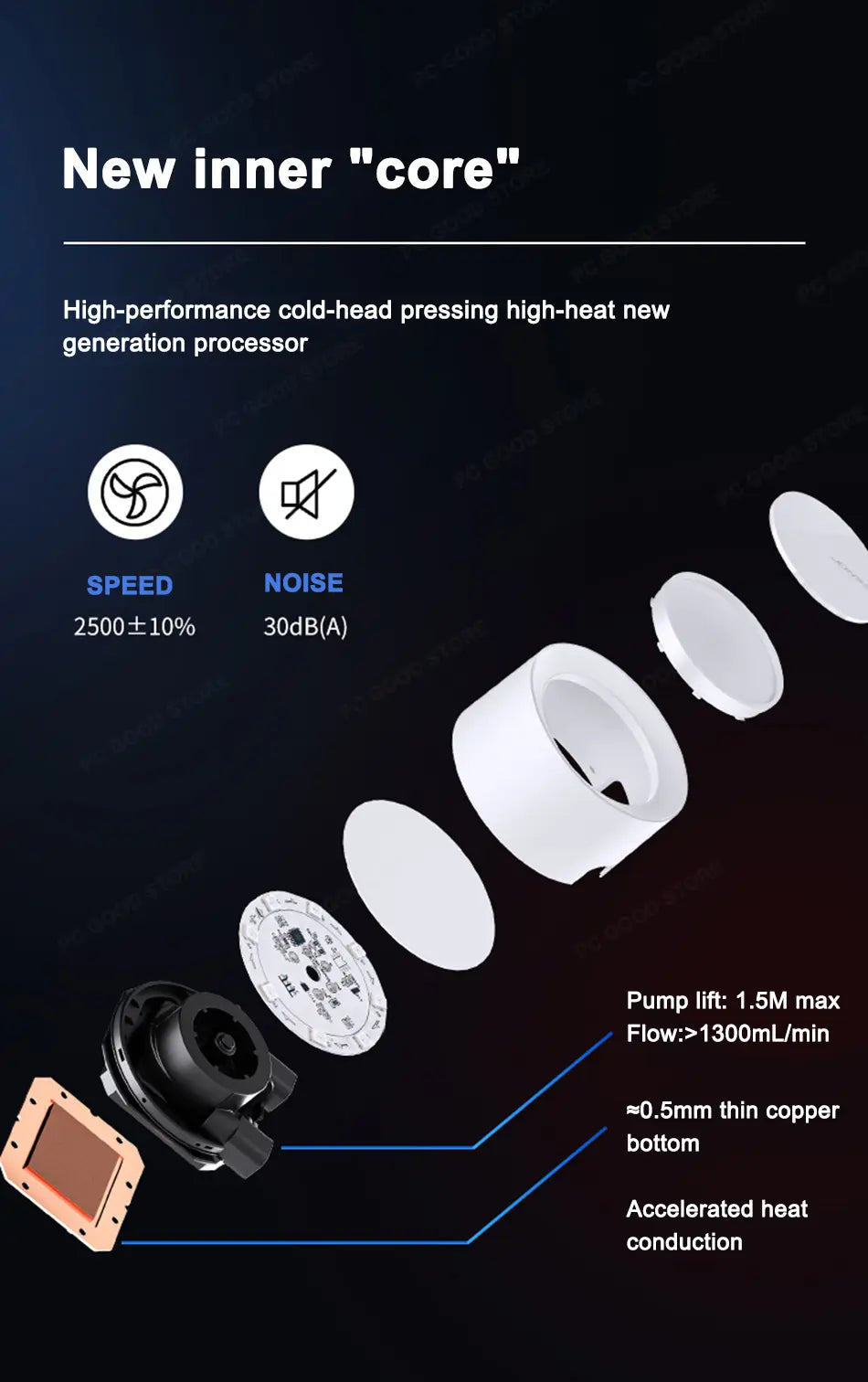 - Quiet operation: low-noise fans and pump with less than 30dB(A), ideal for setups that require silence.