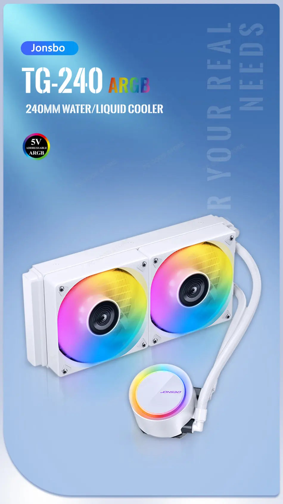 The Jonsbo TG-240 is the perfect option for those looking for quality liquid cooling in a more compact format. With a 240mm radiator, a quiet pump, and high-performance ARGB fans, it delivers power, style, and efficiency to keep your CPU at a good temperature, whether you're gaming or using it daily.