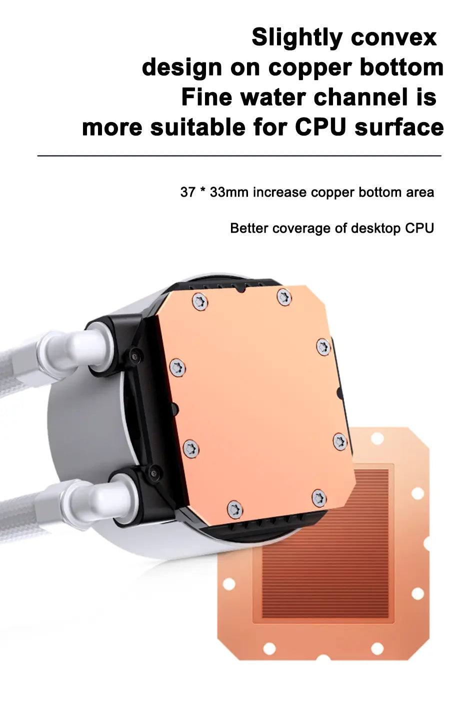 - Compact 240mm radiator: made of aluminum with a copper base, offering efficient heat dissipation.