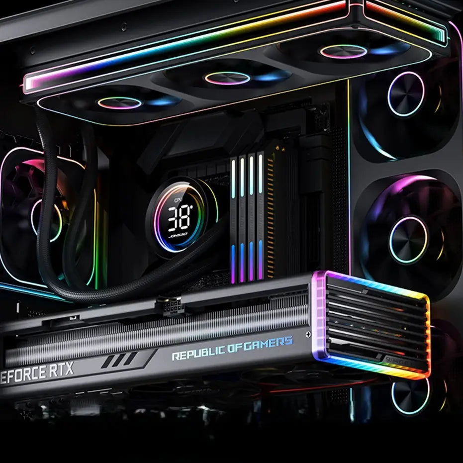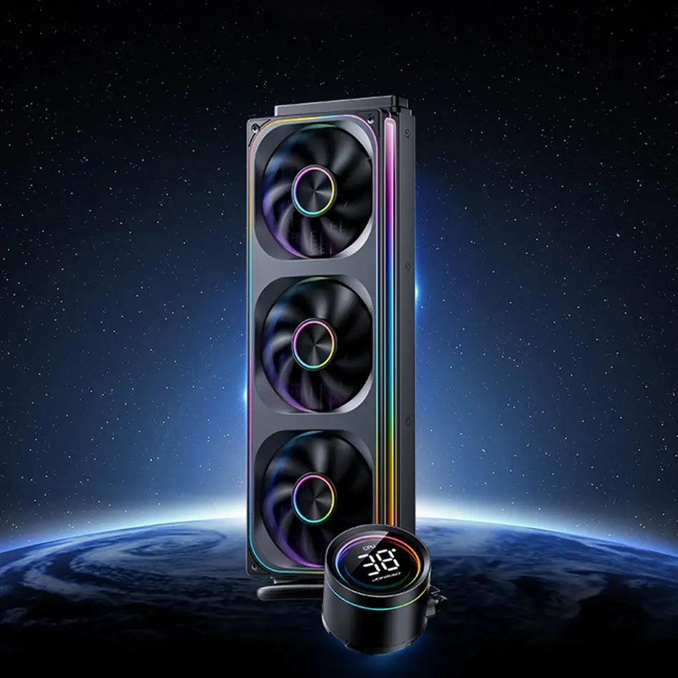 The Jonsbo TH-360 is a 360mm AIO water cooler designed to deliver superior performance in demanding systems. Equipped with a larger radiator, an infinity mirror effect pump, and ARGB lighting , plus three high-performance 120mm ARGB fans, it ensures maximum thermal efficiency with plenty of style.