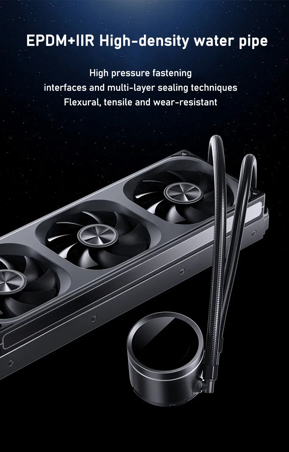 - 360mm aluminum radiator: large dissipation area for high-performance processors.