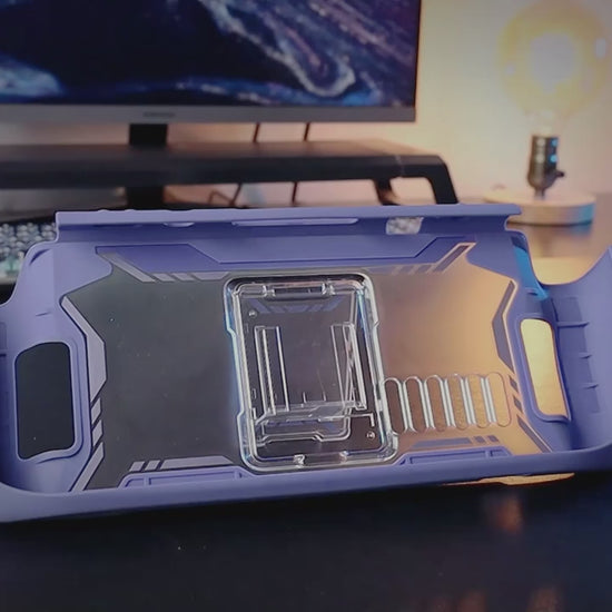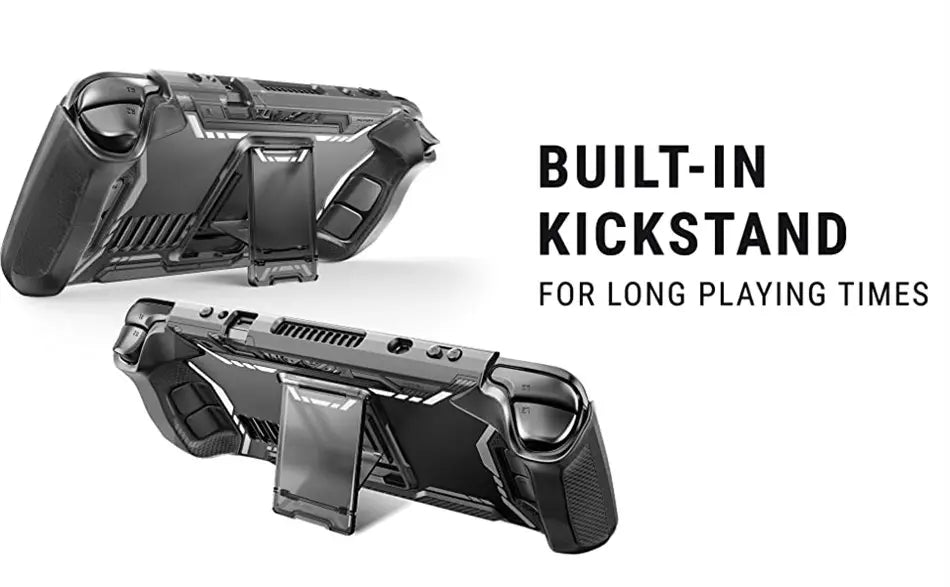 A capa Vapor 2023 da série MUMBA (by SUPCASE) foi feita especialmente para quem quer proteger o Steam Deck OLED (2023) ou o Steam Deck clássico (2022) sem abrir mão de conforto, ergonomia e ventilação. É uma capa robusta, com pegada reforçada, suporte integrado e construção híbrida super resistente.