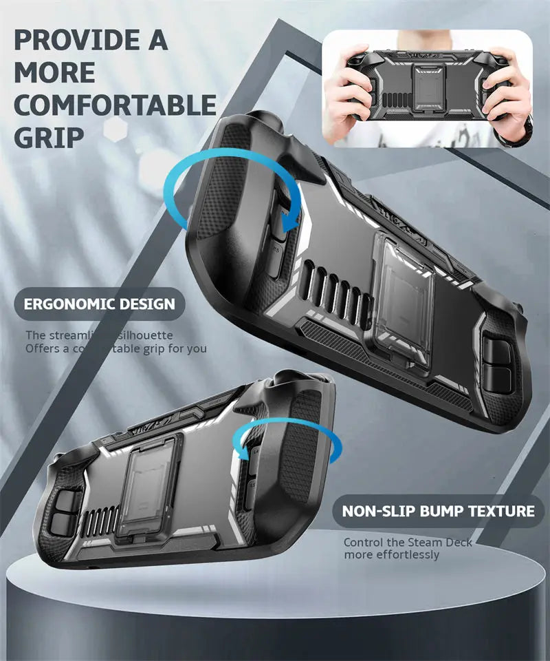 • Design exclusivo para Steam Deck: modelada diretamente no console real, garantindo encaixe preciso no Steam Deck 2022 e Steam Deck OLED 2023.