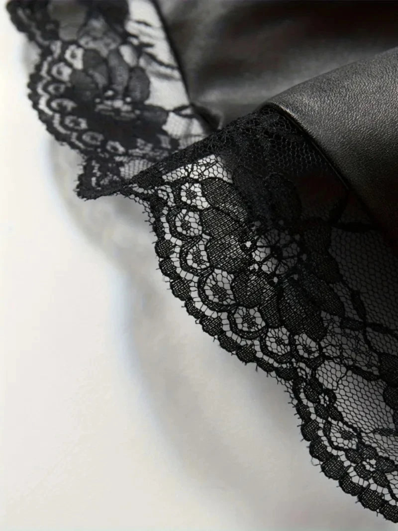 - Material: Couro sintético de alta qualidade, com detalhes em renda.