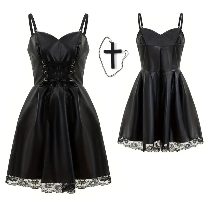Transforme-se na enigmática Misa Amane, de Death Note, com este cosplay feminino estiloso e detalhado. Inspirado no visual gótico da personagem, o traje combina couro sintético e renda, oferecendo um look sexy e fiel ao anime, ideal para eventos temáticos, Halloween, ou convenções de anime.