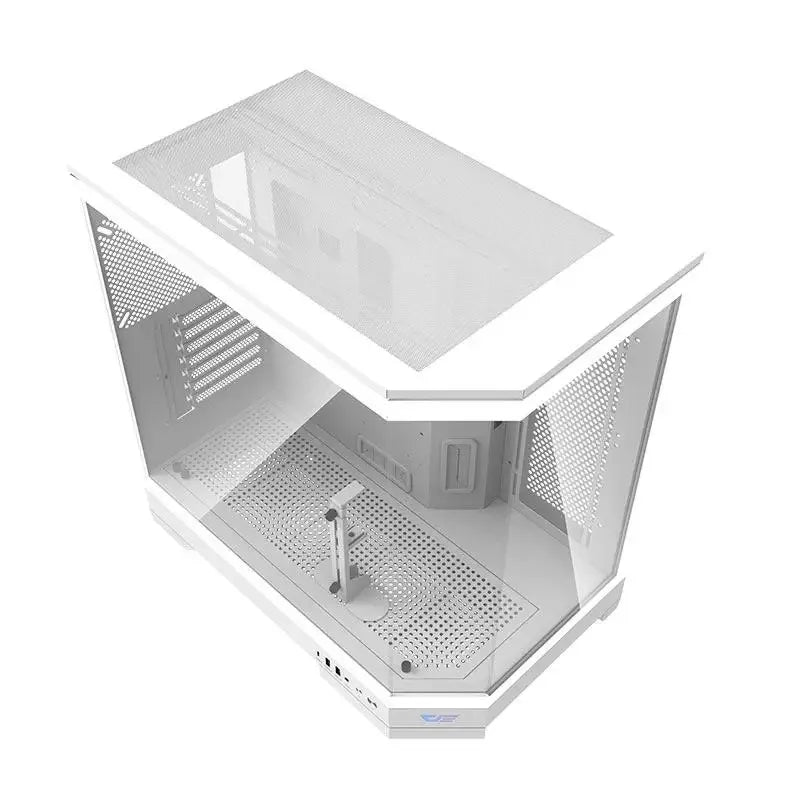 O Gabinete Gamer Darkflash DQX90 é o aliado perfeito para quem deseja montar um setup imponente e altamente funcional. Com suas quatro ventoinhas inclusas e suporte completo para refrigeração líquida, ele é projetado para suportar hardware de alta performance enquanto mantém uma estética clean e moderna, destacada pela lateral de vidro temperado e sua estrutura em branco. Além disso, oferece um amplo espaço interno, facilitando a organização dos componentes.