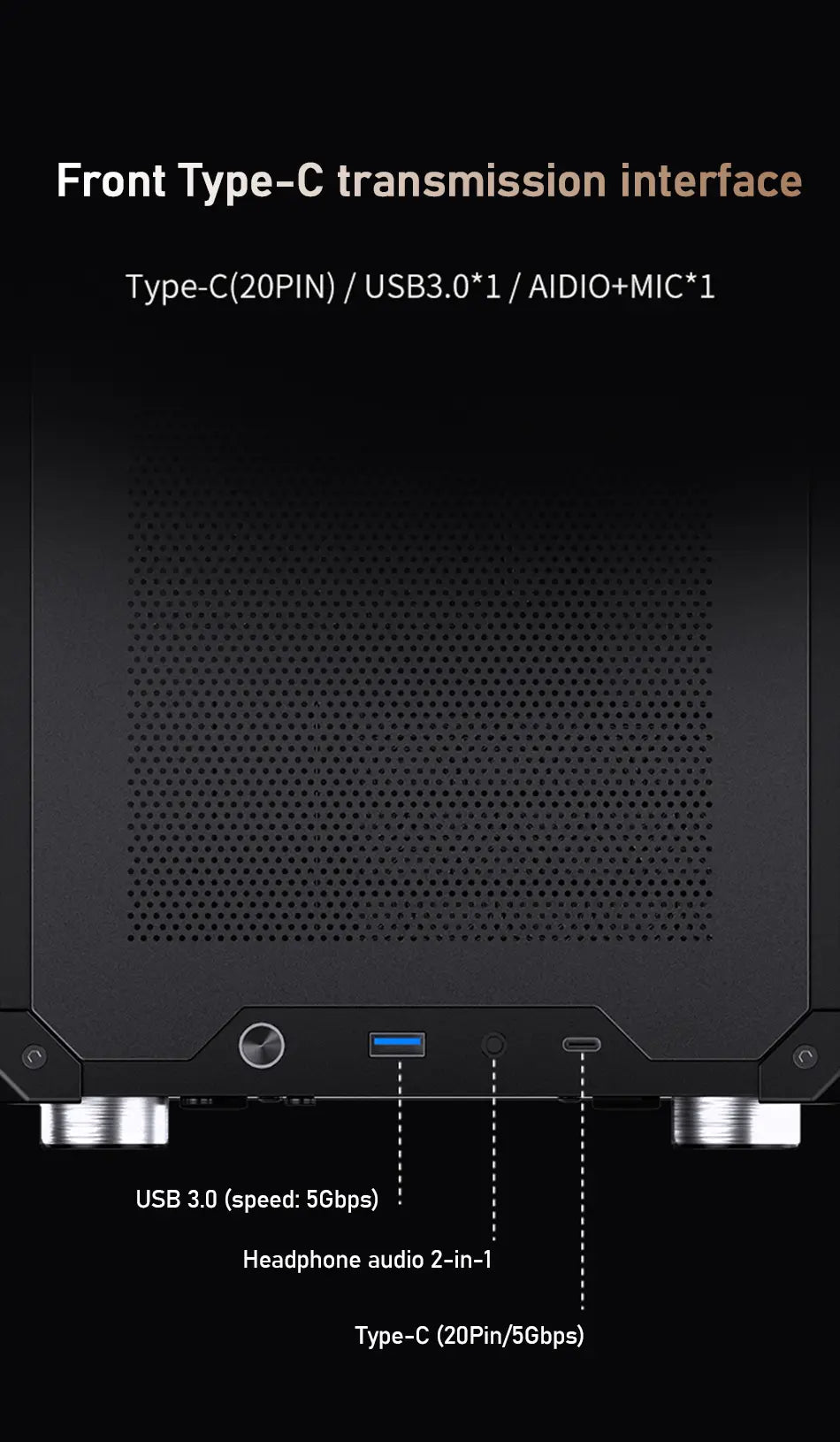 - Portas frontais: Type-C (20PIN) / USB 3.0 x1 / Áudio+Mic (2 em 1)
