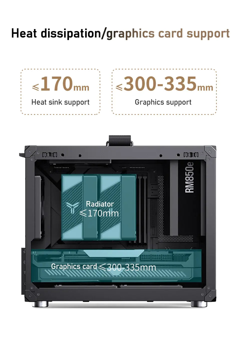 - Comprimento máximo da GPU: 300mm (padrão) / até 335mm dependendo da montagem