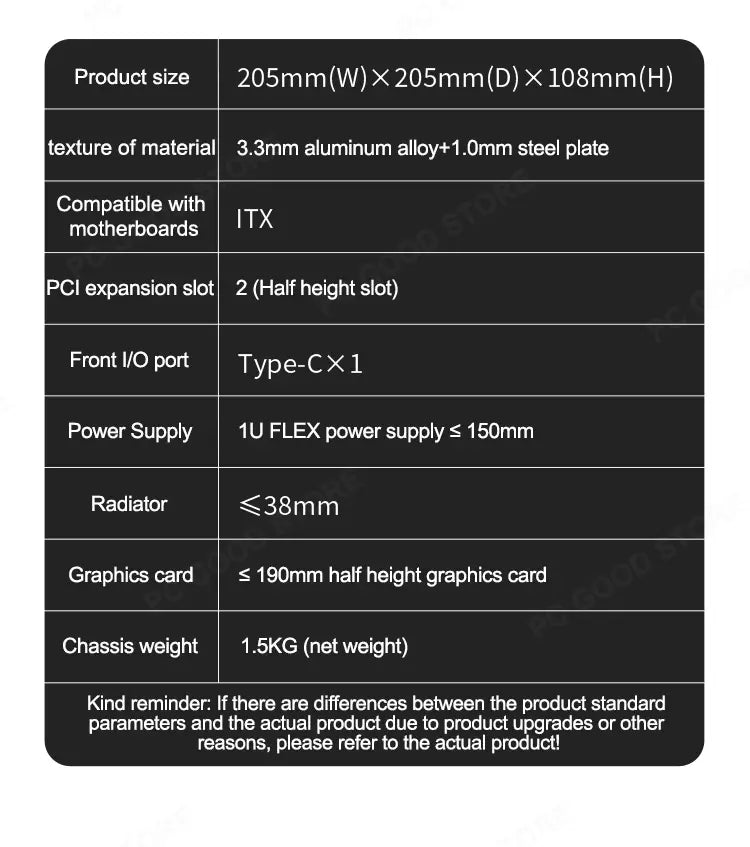 - Formato super compacto: apenas 205 x 205 x 108 mm, ideal para setups discretos.