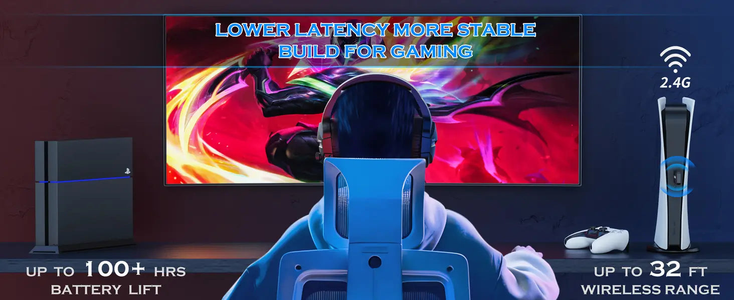 - Conectividade Dupla 2.4G + Bluetooth 5.0 – Experimente o áudio sem fio de alto desempenho com 2,4 GHz para PS e PC, enquanto a conexão Bluetooth permite alternar para dispositivos móveis sem complicações.