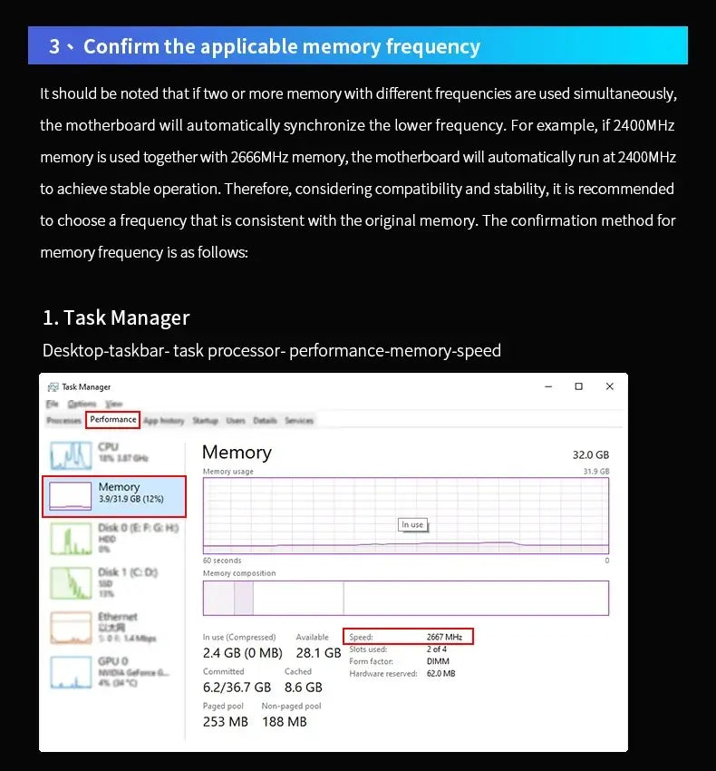 - Ative o XMP no BIOS para atingir as frequências anunciadas. Caso contrário, a memória pode operar em velocidades padrão (2400MHz ou 2666MHz).