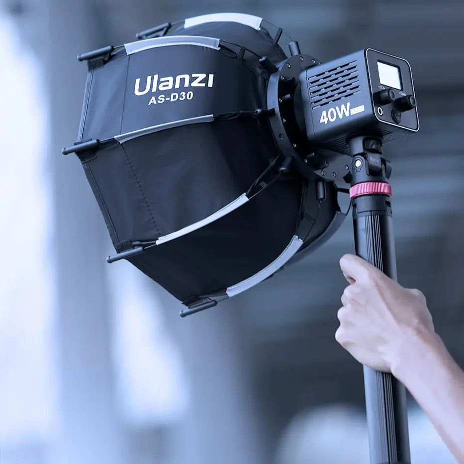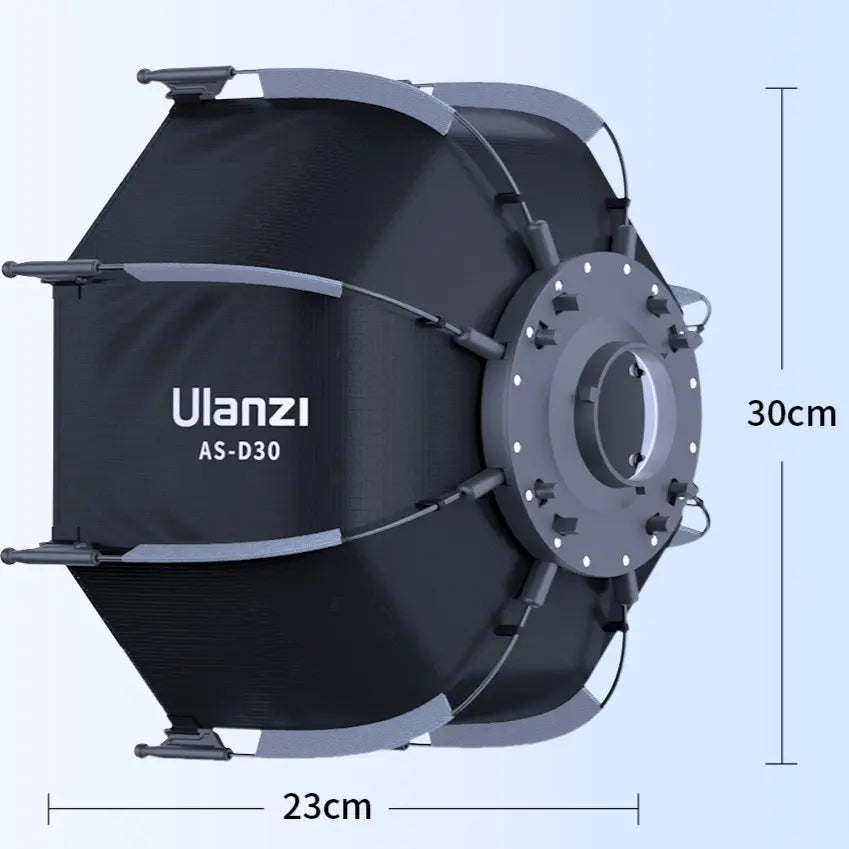 O Refletor Portátil Ulanzi AS-D30 é um softbox octogonal leve e dobrável, feito para suavizar a luz em gravações e fotos com eficiência. Com montagem Mini Bowens e compatibilidade com luzes COB de 40W, ele combina praticidade, montagem rápida e portabilidade, oferecendo uma luz mais suave em qualquer lugar.