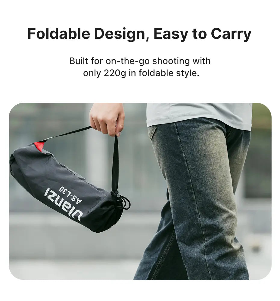 Design portátil: Apenas 220g, dobrável e fácil de transportar no dia a dia.