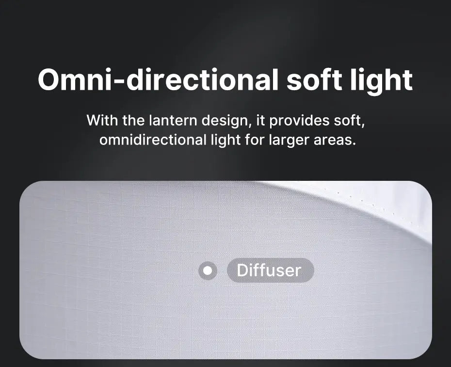 Luz suave omnidirecional: O formato de lanterna distribui luz homogênea em 360 graus.