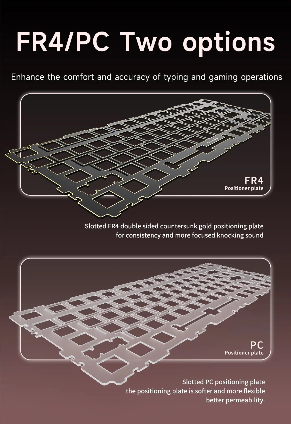 Design de construção avançada com múltiplas camadas de espuma: Poron, IXPE, PET e base de silicone. Isso garante uma digitação macia, acústica agradável e mínima vibração.