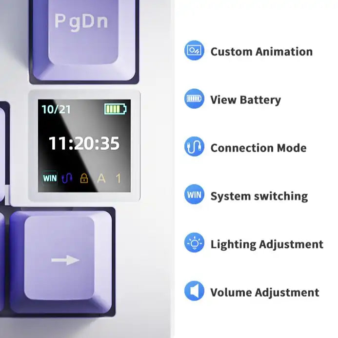Experimente uma imersão total nos jogos com o teclado mecânico AJAZZ AK820 Pro, equipado com uma tela TFT integrada, conexão versátil e um botão multifuncional. Ideal para jogadores que buscam desempenho e flexibilidade, o AK820 Pro combina a solidez do design mecânico com o conforto e precisão das teclas de alta durabilidade.