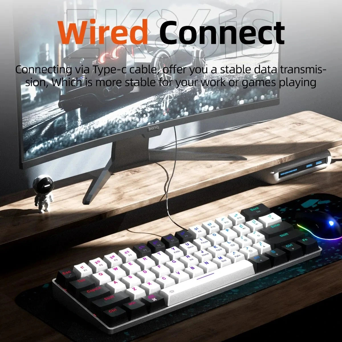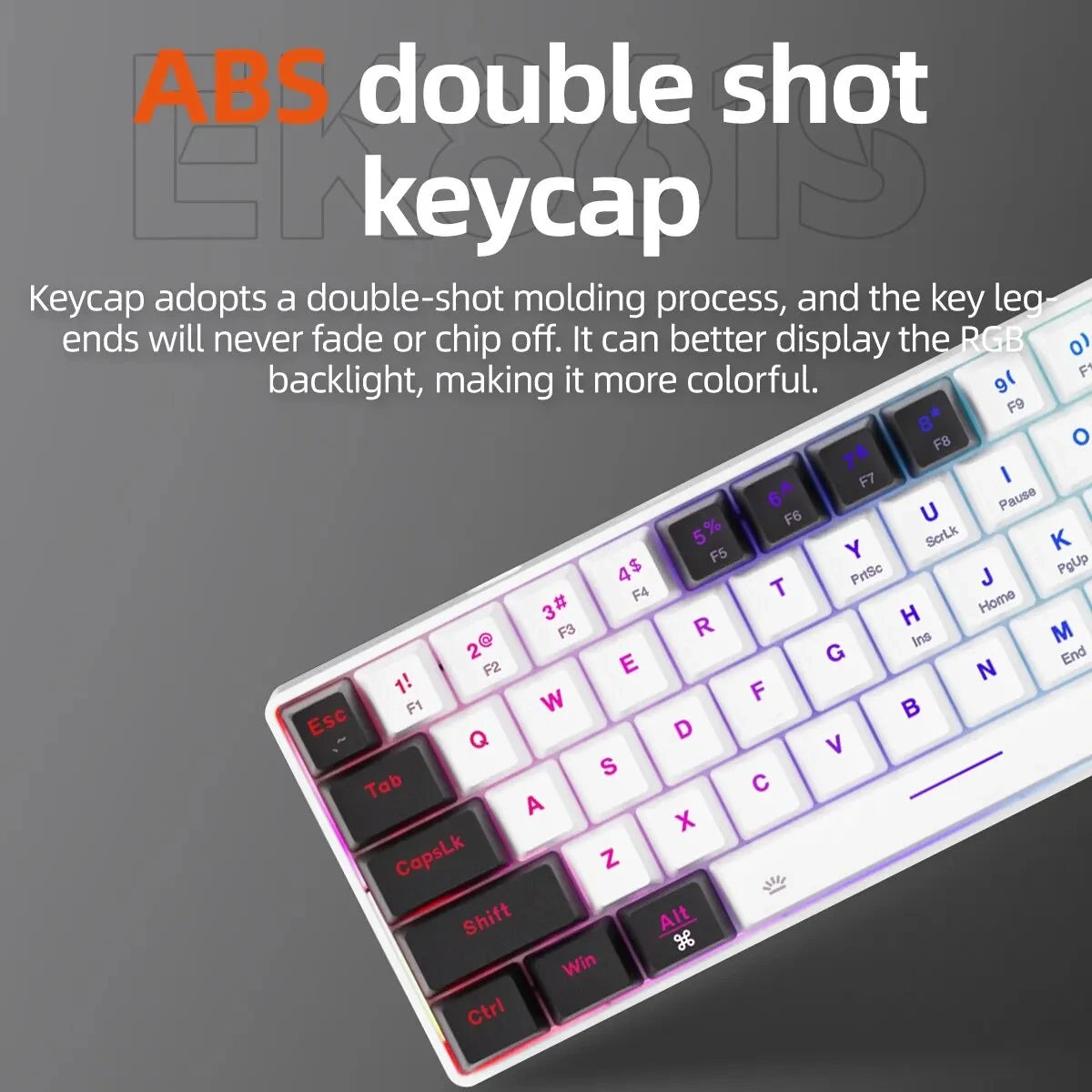 Design Compacto com 61 Teclas: Com um layout de 61 teclas, o EK861S é compacto e economiza espaço, mantendo todas as funcionalidades essenciais para uma digitação eficiente.