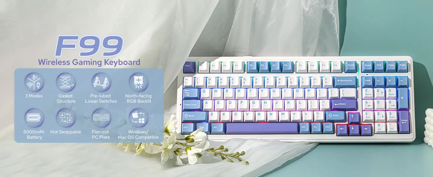 Se você busca um teclado versátil, confortável e com aquele visual de respeito, o F99 entrega tudo isso com estilo. Quer performance sem fio real, uma digitação silenciosa e construção premium? Então é esse aqui.